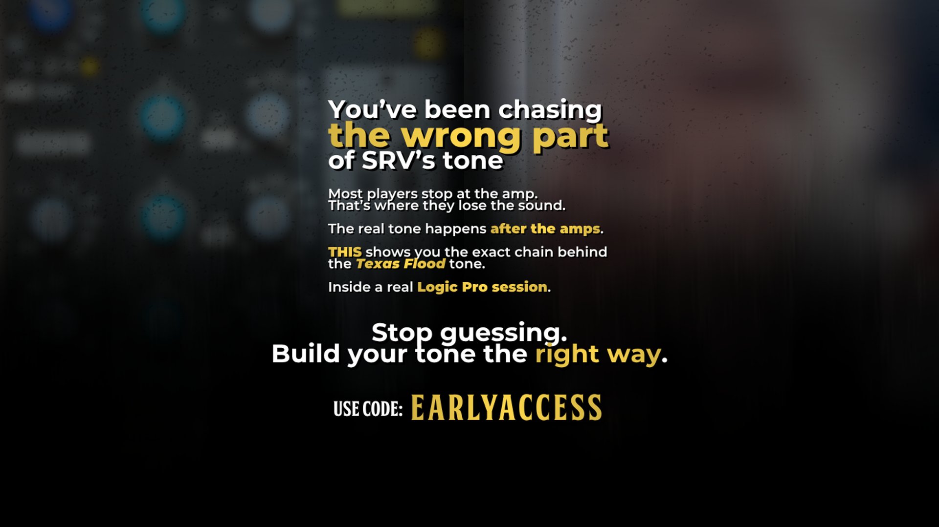 The SRV Theory Texas Flood Tone Lab (Lite) gives you a fully built Logic Pro session using only stock plugins, featuring a demo guitar performance of “Love Struck Baby” alongside Double Trouble-style multi-tracks that you can play along to. With a step-by-step walkthrough, you’ll learn how to shape tone beyond the amp—using EQ, compression, routing, and balance to achieve a record-ready sound.